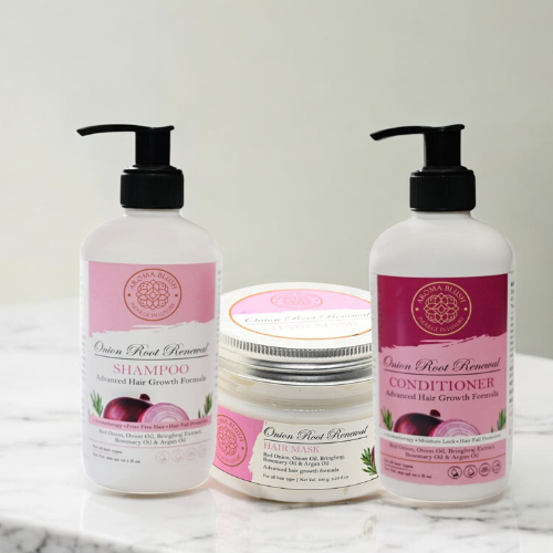 Transform your hair care routine with Aroma Blush Onion Root Renewal Conditioner. Infused with the unique...