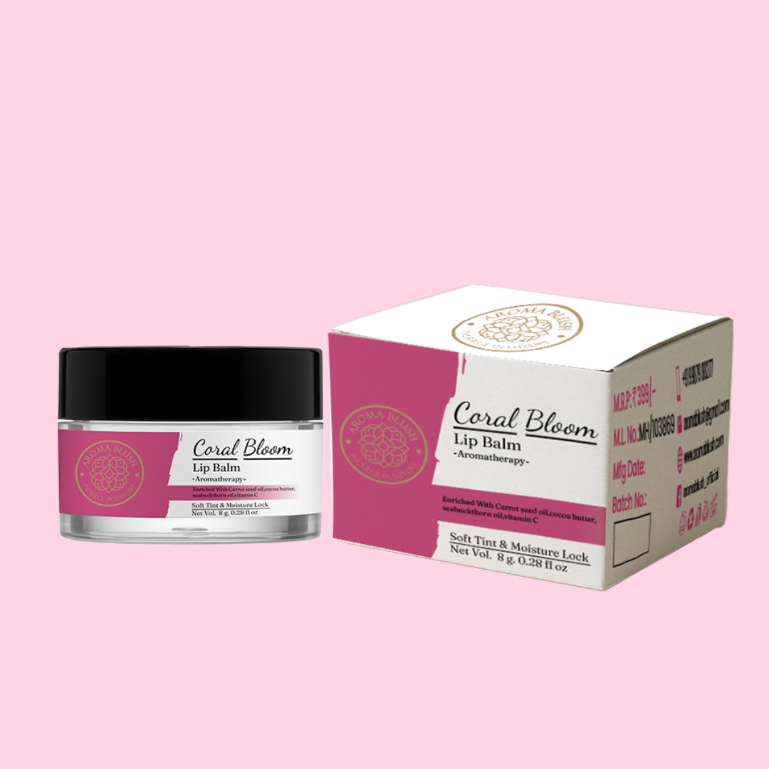 AROMABLUSH Coral Bloom Lip Balm – Enriched with Carrot Seed Oil, Cocoa Butter, Sea Buckthorn Oil & Vitamin C