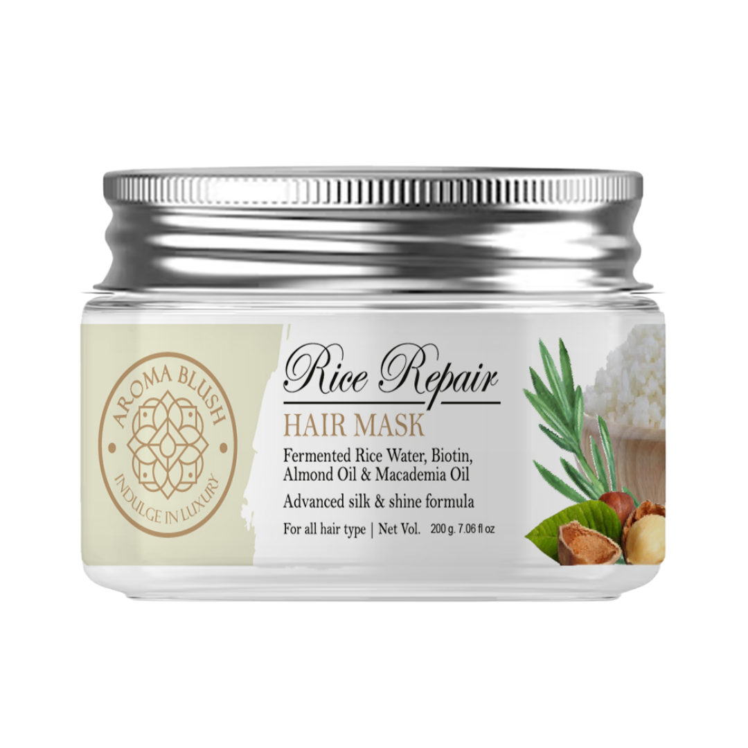 Discover the power of nature with the Aromablush Rice Repair Hair Mask. Formulated with Fermented...