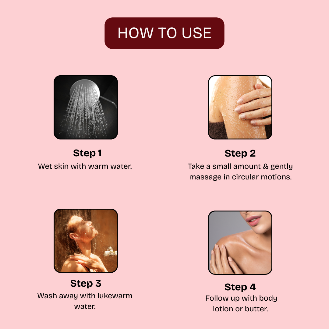 Give your skin a juicy glow with AROMABLUSH Berrylicious AHA Sugar Scrub. Powered by a blend of natural AHA fruit acids, antioxidant-rich berries, niacinamide, and nourishing blueberry oil, this exfoliator gently polishes the skin, boosts radiance, smoothens texture, and helps fade dullness and uneven tone. Infused with glycolic acid for effective resurfacing, it’s your shortcut to healthy, luminous skin.