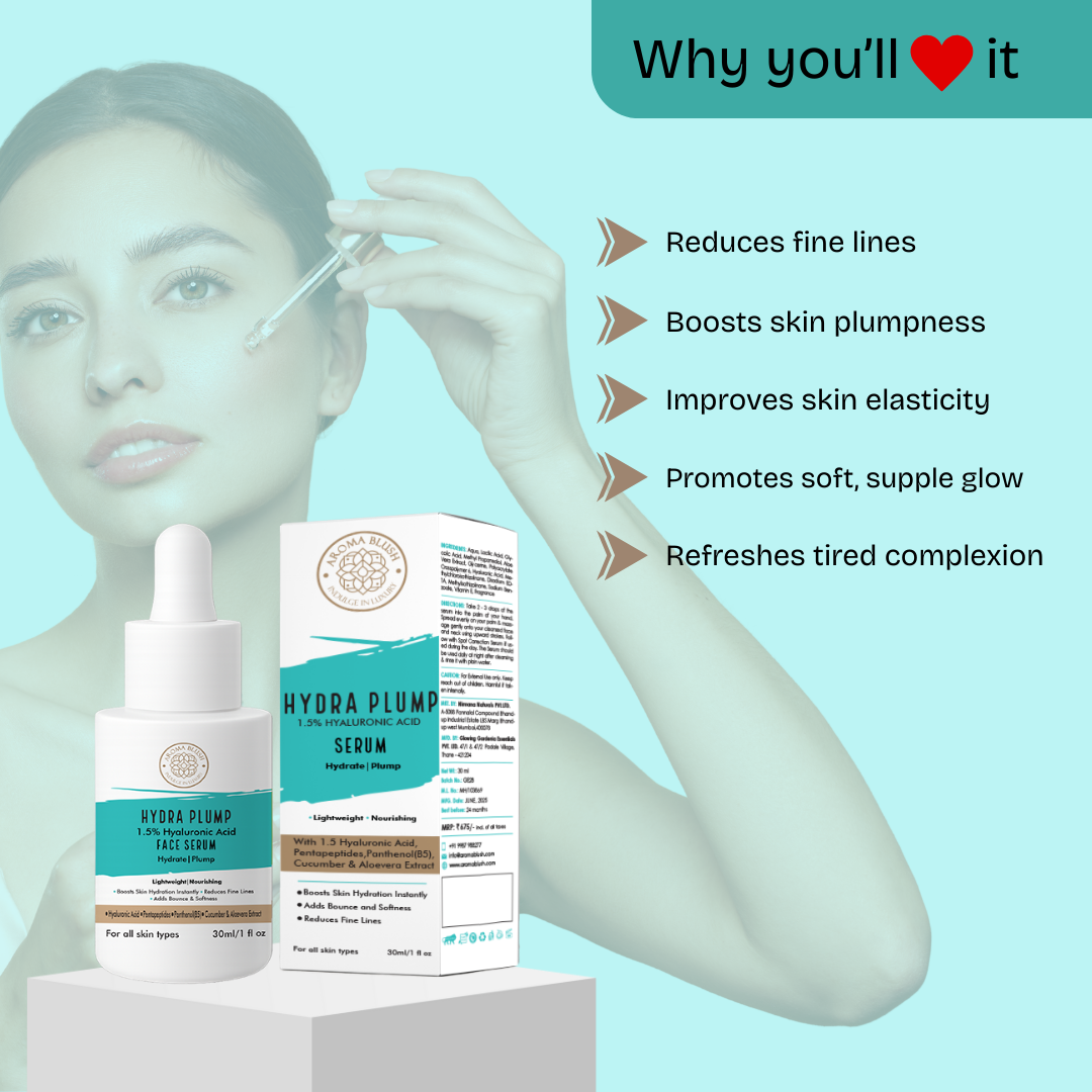 Aromablush Hydar Plump 1.5% Hyaluronic Acid Face Serum Deep Hydration | Plump Skin | Barrier Repair