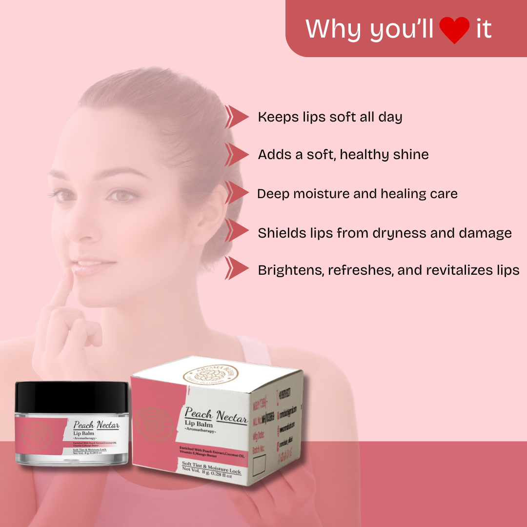 AROMABLUSH Peach Nectar Lip Balm – Enriched with Peach Extract, Coconut Oil, Vitamin E & Mango Butter