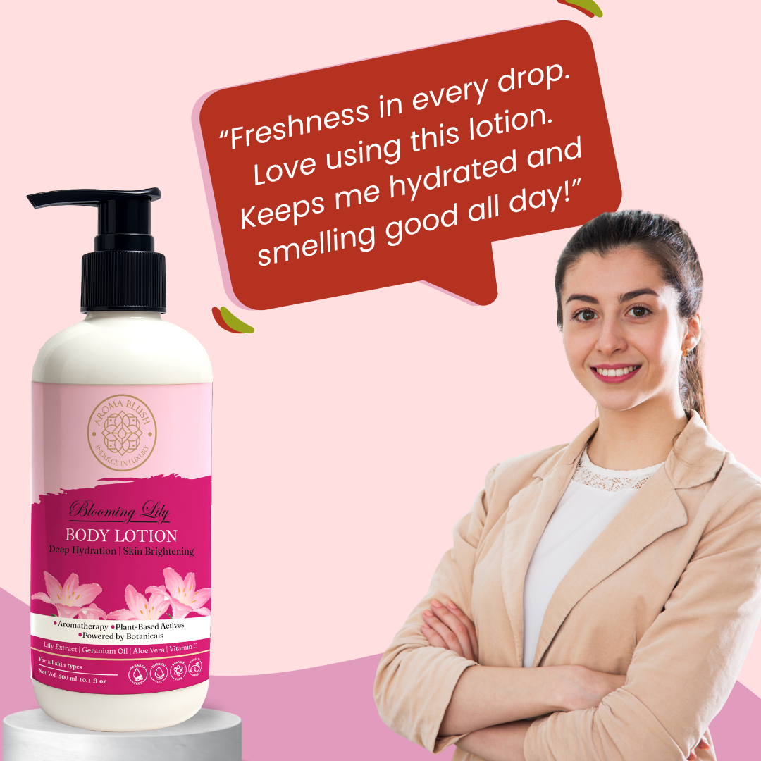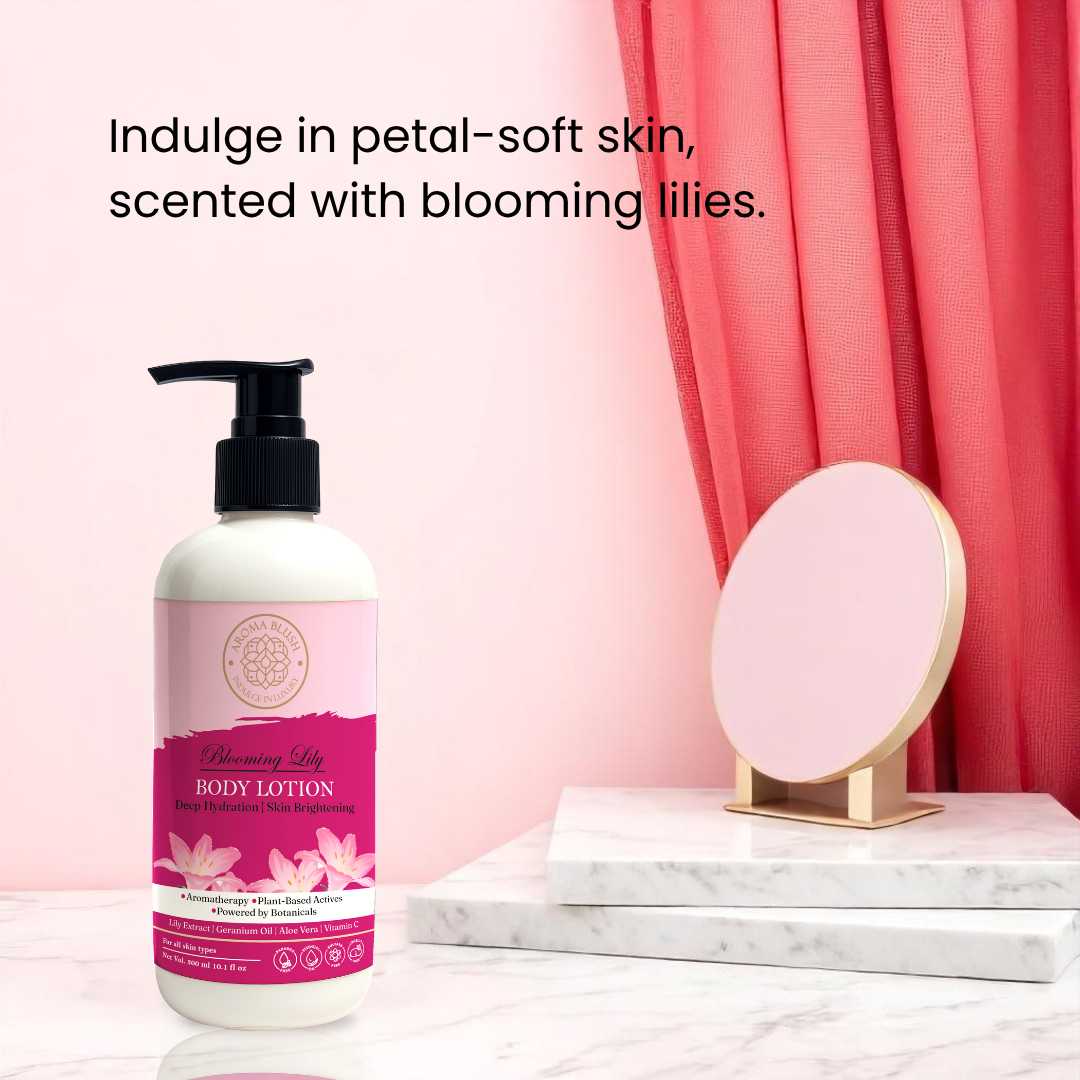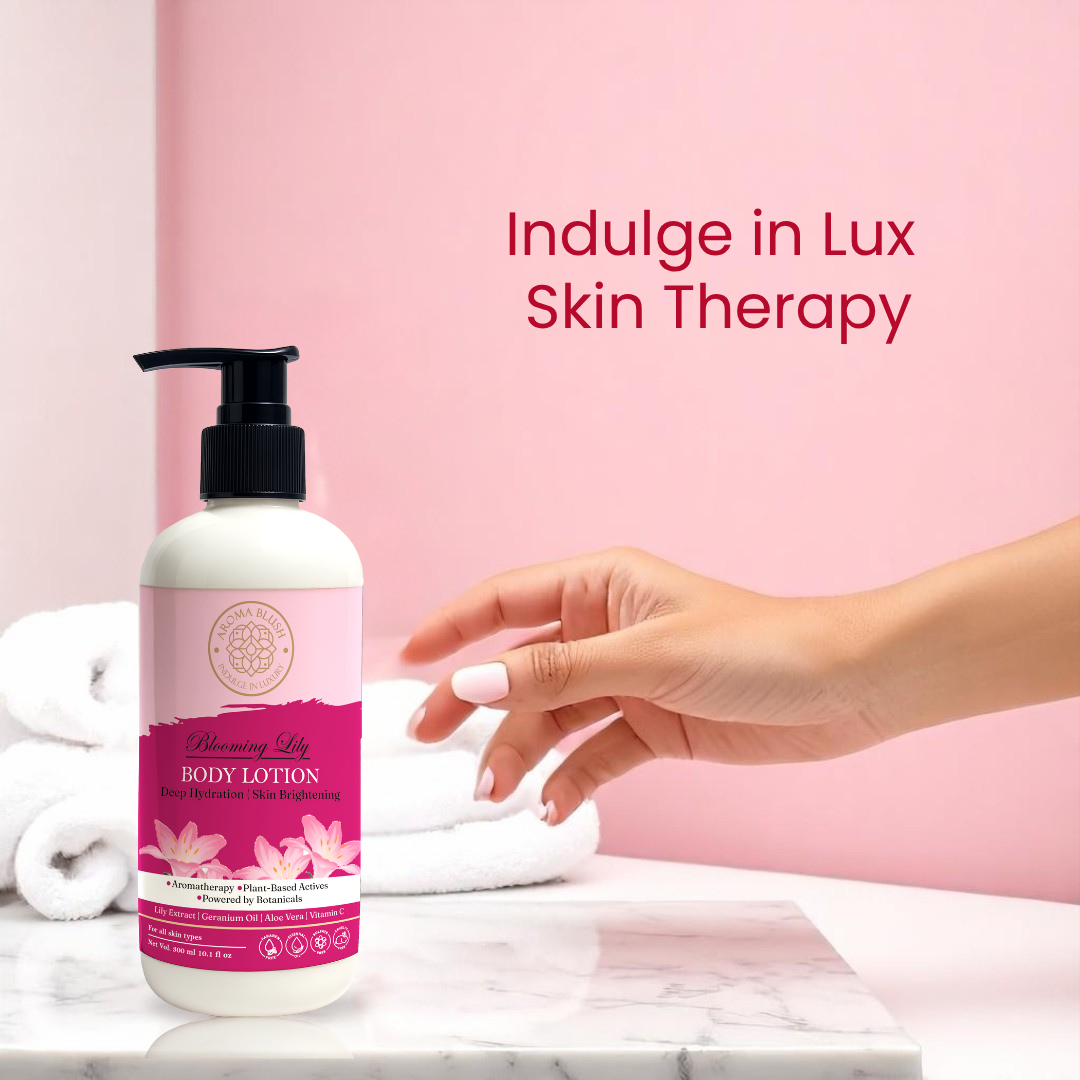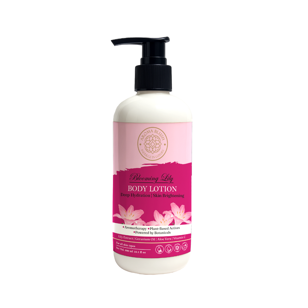 Aromablush Blooming Lily Body Lotion is crafted to provide your skin with luxurious hydration and a burst of floral freshness. Enriched with the aromatic essence of Geranium Oil and the nourishing benefits of Vitamin E, this lotion deeply moisturizes, soothes, and revitalizes the skin. Feel the softness and captivating fragrance of blooming lilies, while experiencing the calming effects of this premium, natural formula. Ideal for daily use, Aromablush Blooming Lily Body Lotion pampers your skin, leaving it soft, supple, and glowing with health.