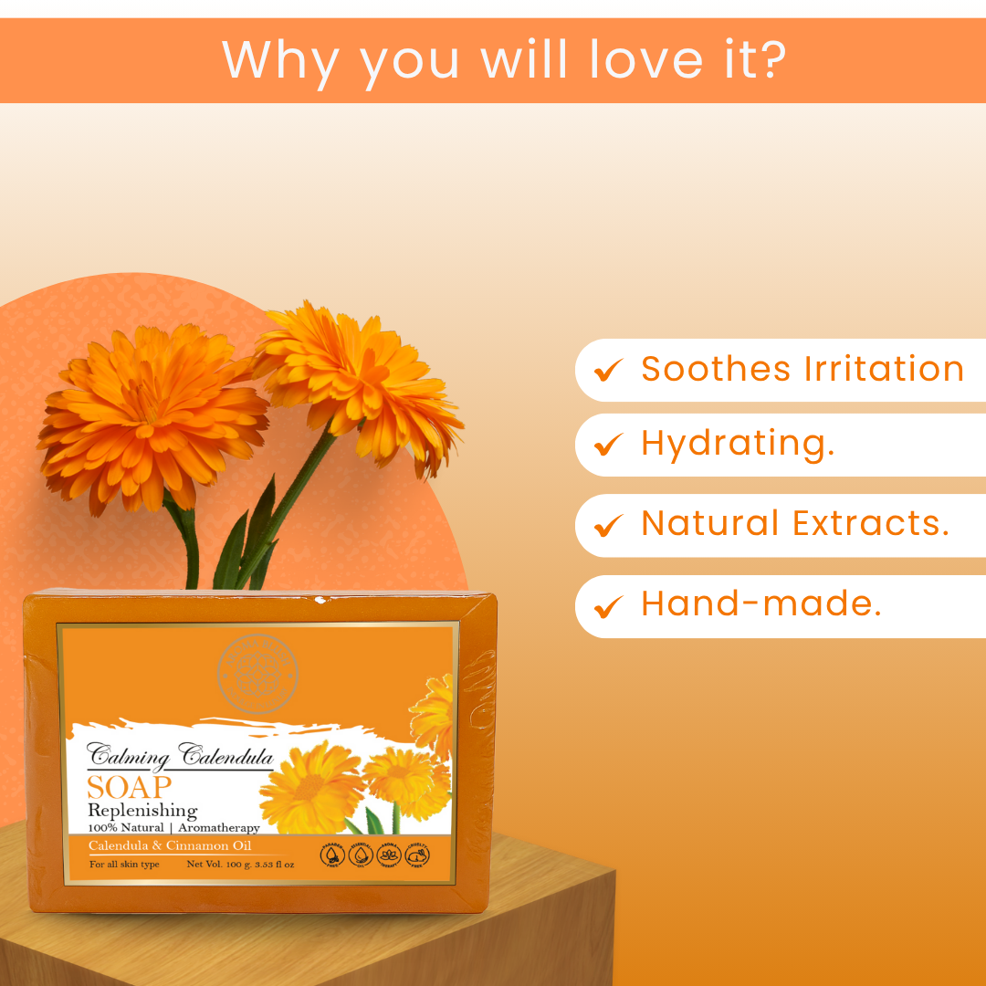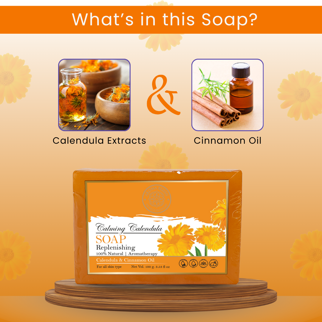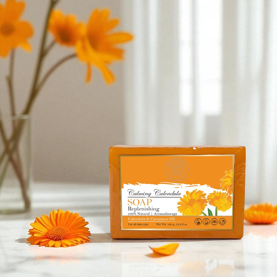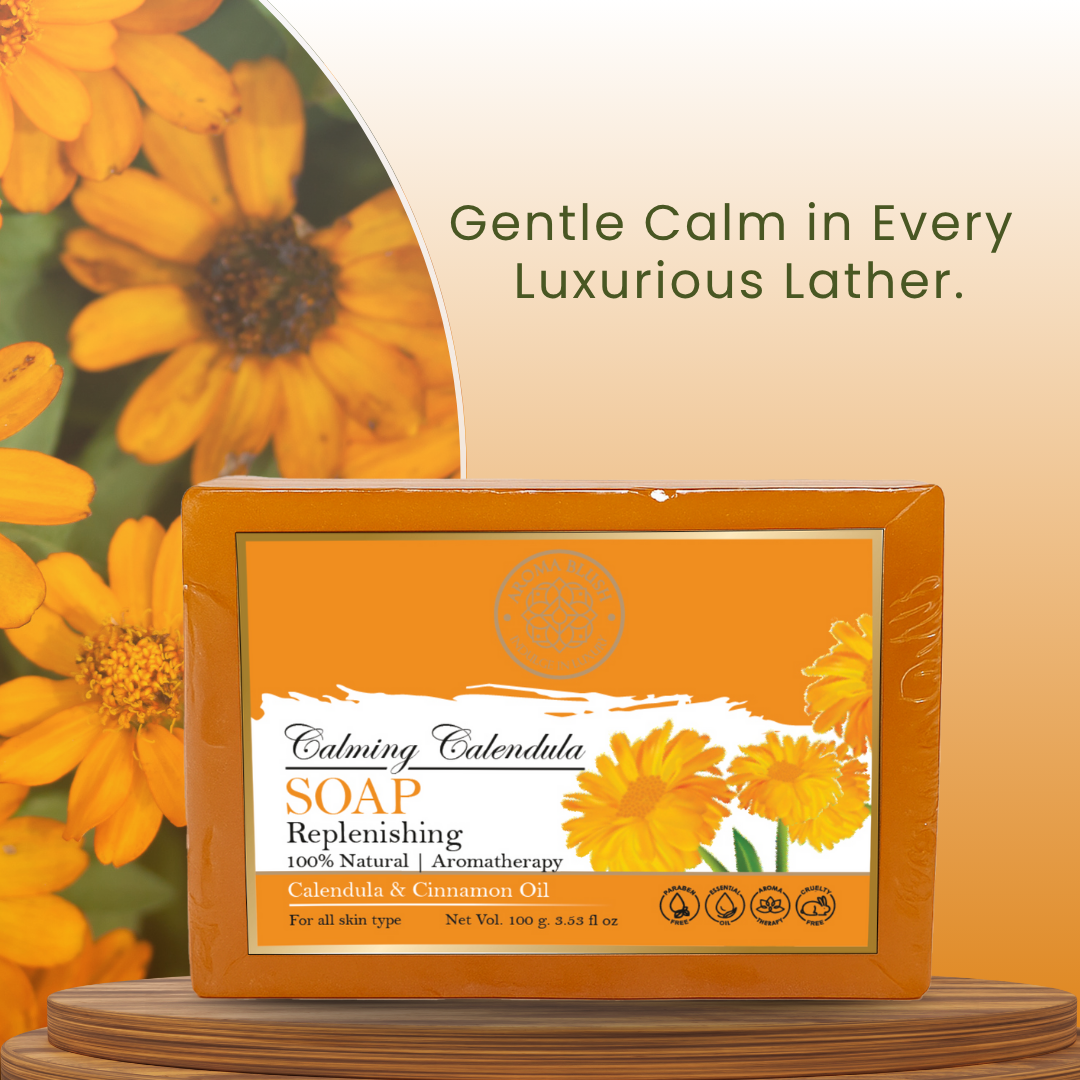 Indulge your skin in the soothing embrace of Aromablush Calming Calendula Soap—a handcrafted blend of nature’s finest ingredients. Infused with calming Calendula Oil and the warm, comforting essence of Cinnamon, this luxurious soap is designed to nourish, hydrate, and calm even the most sensitive skin.