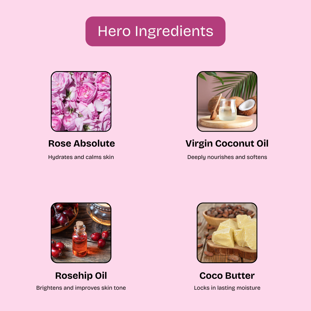 Coco Rose Bliss Sugar Scrub,enriched with Rose absolute,coco butter & Rosehip oil