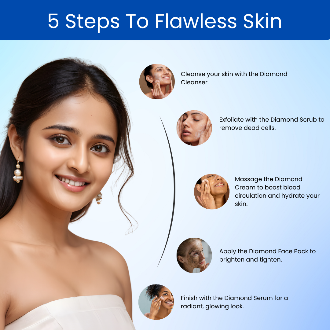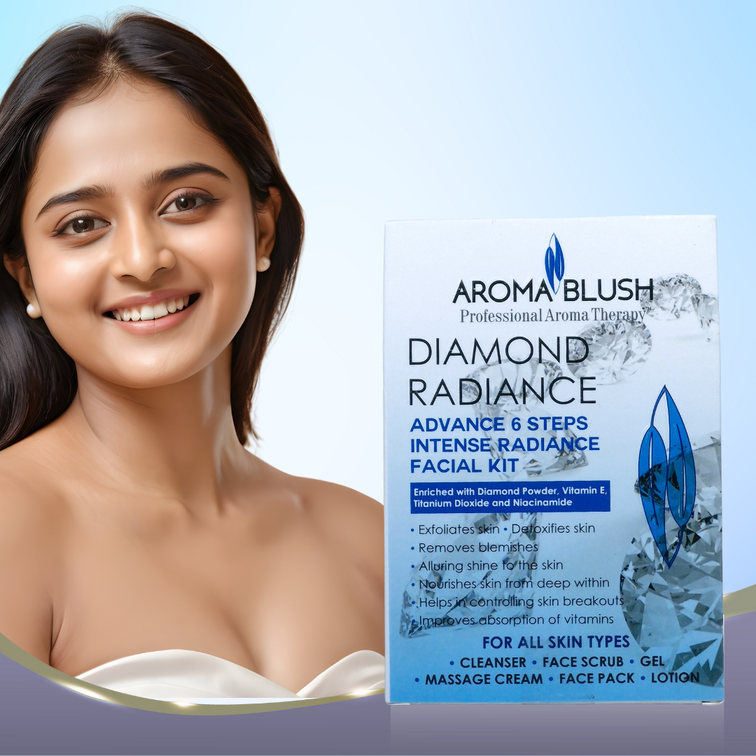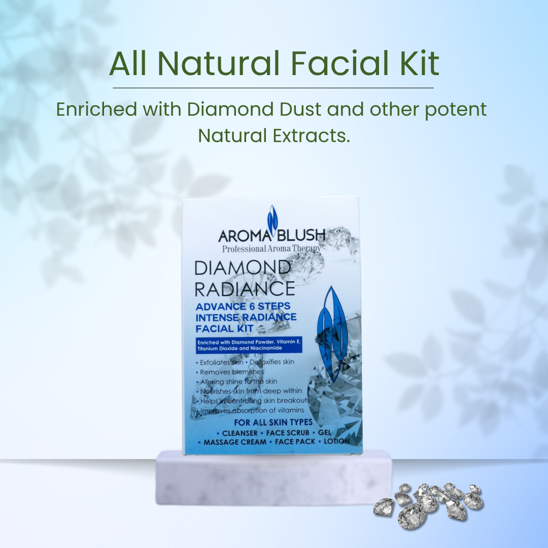 Unveil your skin’s true brilliance with the AromaBlush Diamond Radiance Facial Kit—a luxurious 6-step facial experience enriched with Diamond Powder, Vitamin E, Titanium Dioxide, and Niacinamide. Designed for those who crave instant glow, deep hydration, and youthful radiance, this salon-grade facial kit delivers visible luminosity and lasting smoothness in just one session.