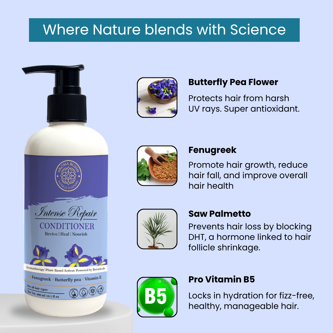 Give your hair the care it deserves with our Hair Strength & Repair Conditioner. Enriched with Fenugreek, Saw Palmetto, Butterfly Pea Flower, and Pro Vitamin B5, it nourishes, strengthens, and softens hair from root to tip. This lightweight formula reduces hair fall, hydrates dry strands, and adds a healthy, natural shine. It also soothes the scalp and improves hair texture with every use. Perfect for all hair types, including dry, damaged, and chemically-treated hair.