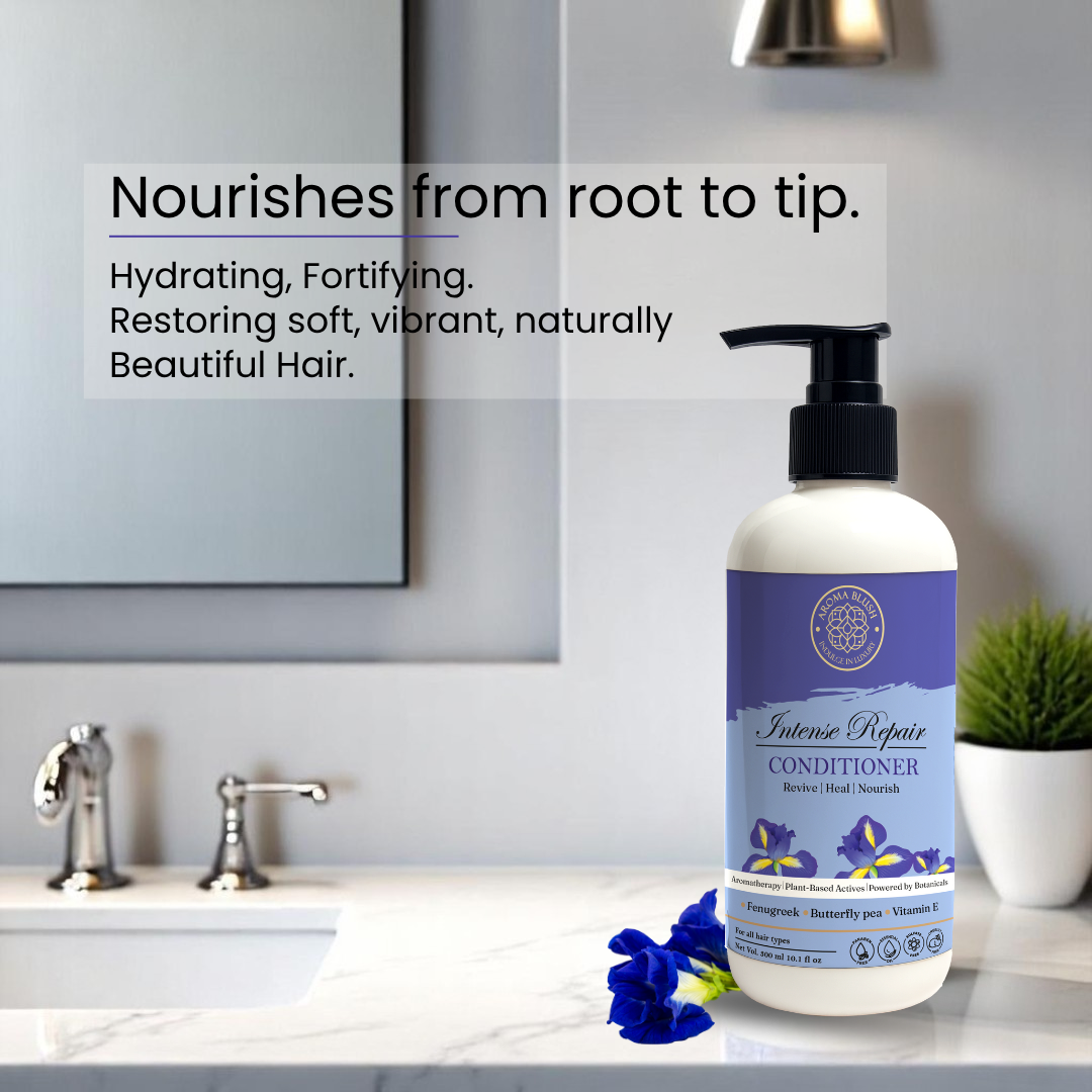 AromaBlush Intense Repair range is your solution to dull, damaged, and brittle hair. Powered with a unique blend of botanical extracts and keratin-boosting proteins, our shampoo, conditioner, and hair mask trio work together to deeply repair, strengthen, and transform hair from root to tip. Whether your hair suffers from heat, styling, or environmental stress, this intensive regimen revives strands and restores softness, shine, and resilience.