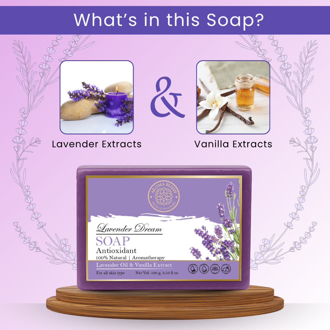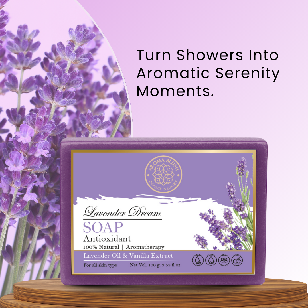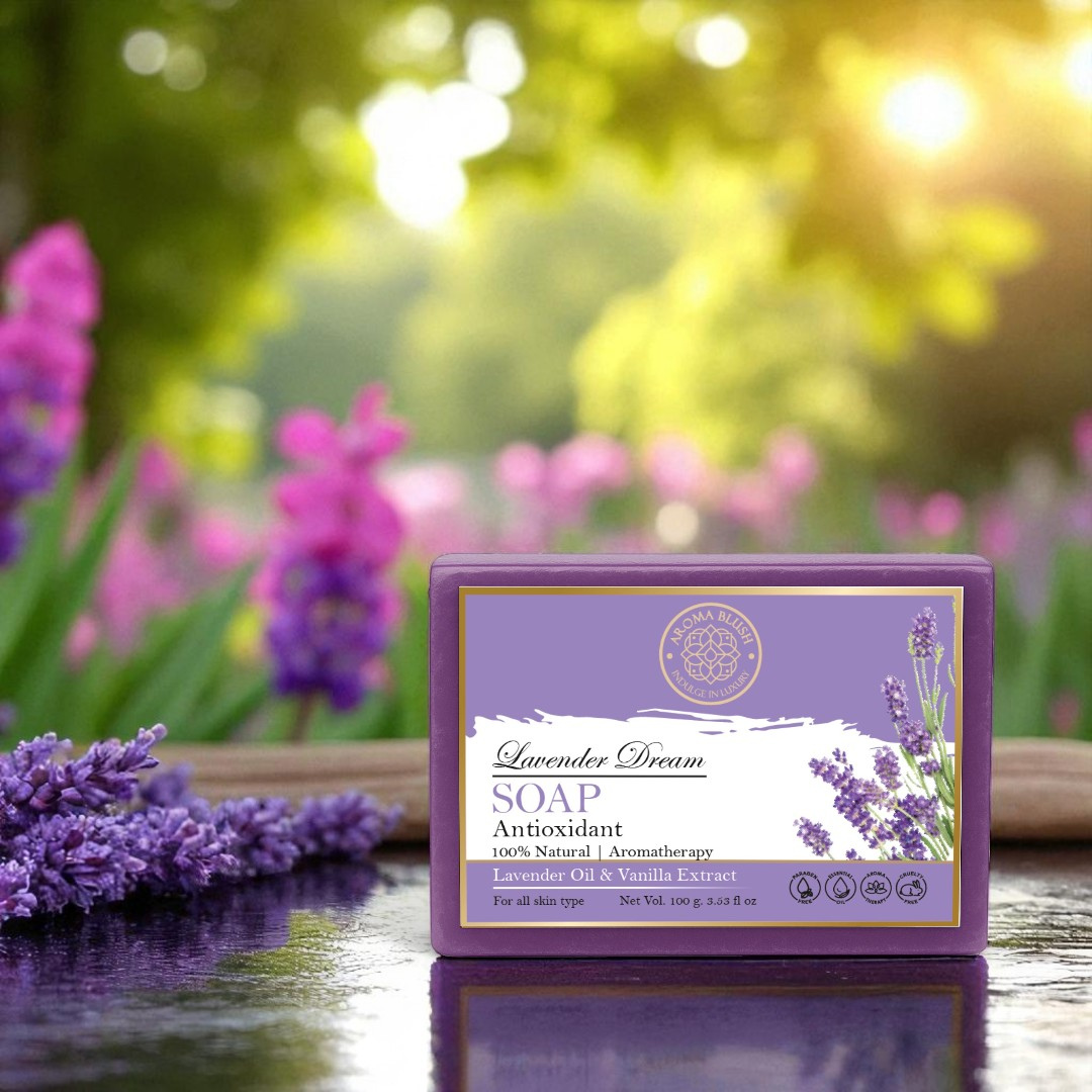 Experience pure relaxation with our handmade Aromablush Lavender Dream Soap. Infused with calming Lavender Oil and sweet Vanilla Extract, this luxurious soap gently soothes your senses while deeply nourishing your skin. Perfect for unwinding after a long day, it leaves your skin feeling soft, refreshed, and beautifully fragrant.