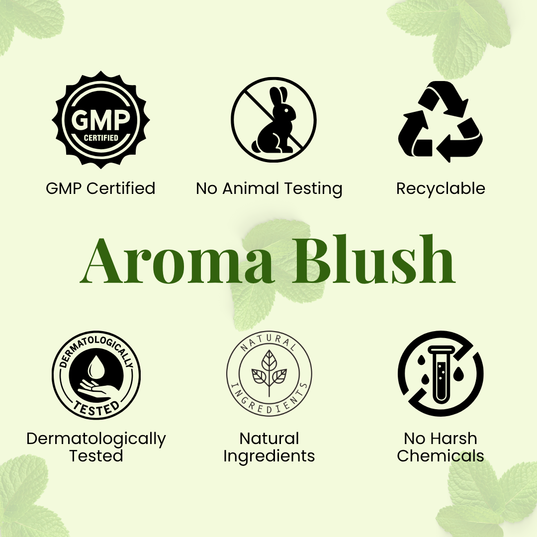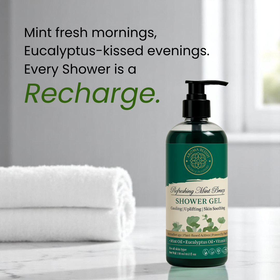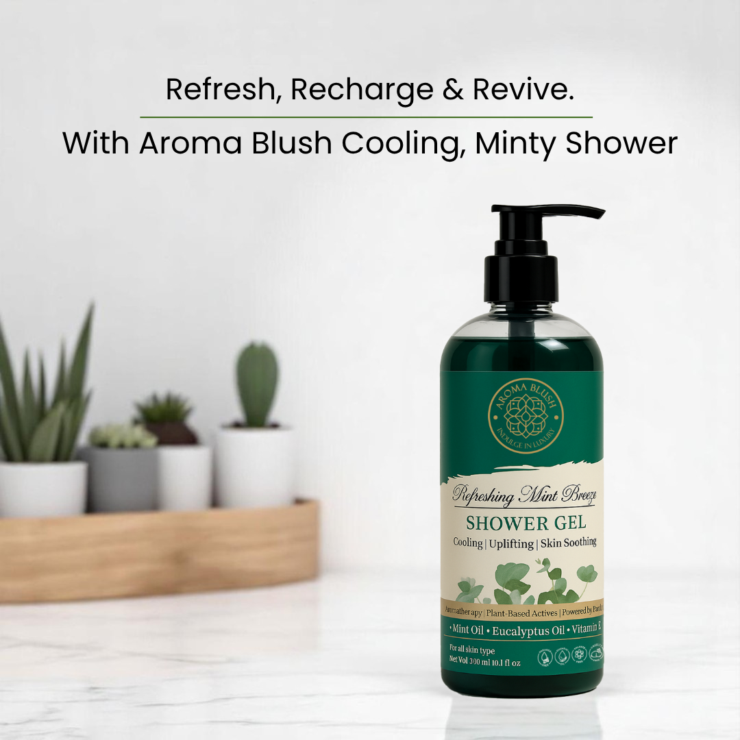 Feel revitalized with the cooling freshness of Aromablush Refreshing Mint Breeze Shower Gel, formulated with natural Mint Oil, Eucalyptus Oil, and the nourishing benefits of Vitamin E. This shower gel provides an invigorating cleanse that leaves your skin feeling refreshed, hydrated, and energized. Ideal for starting your day with a burst of cooling energy or unwinding after a long day.