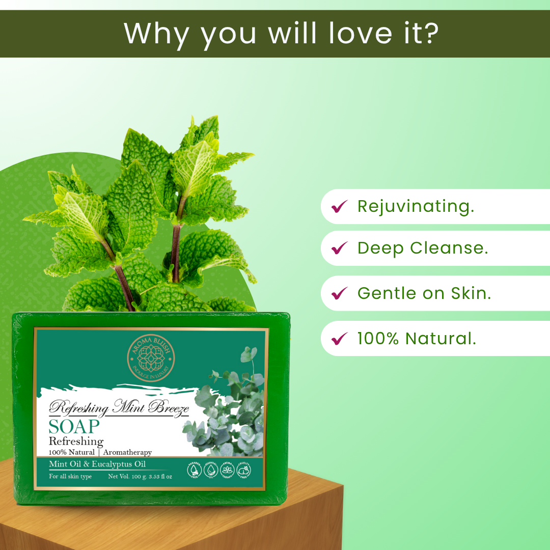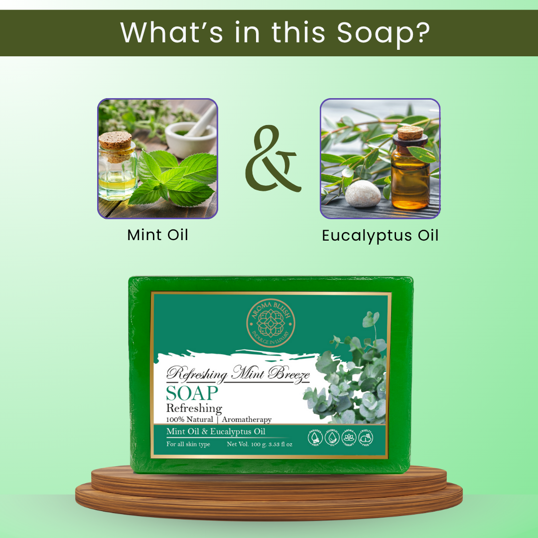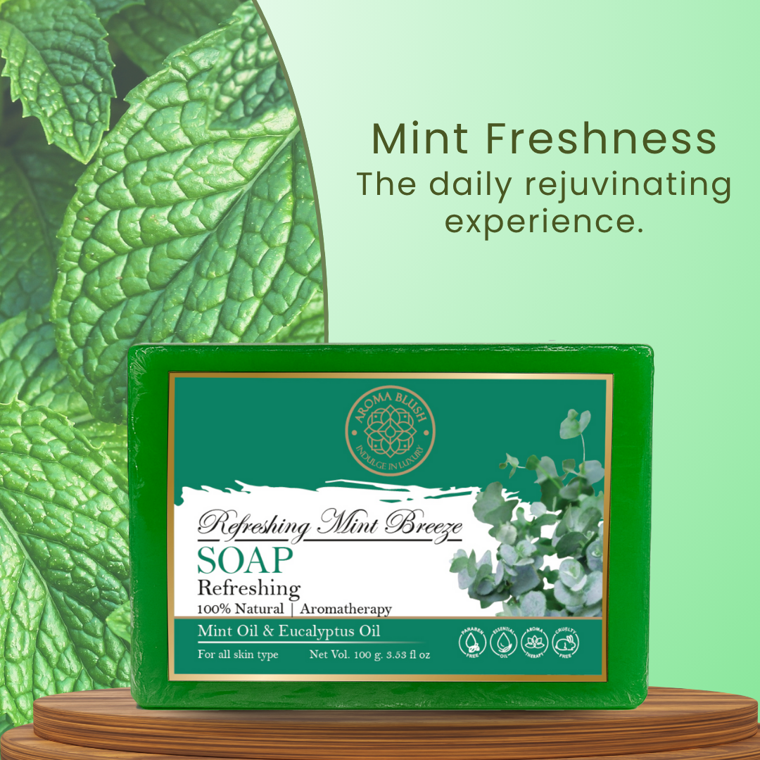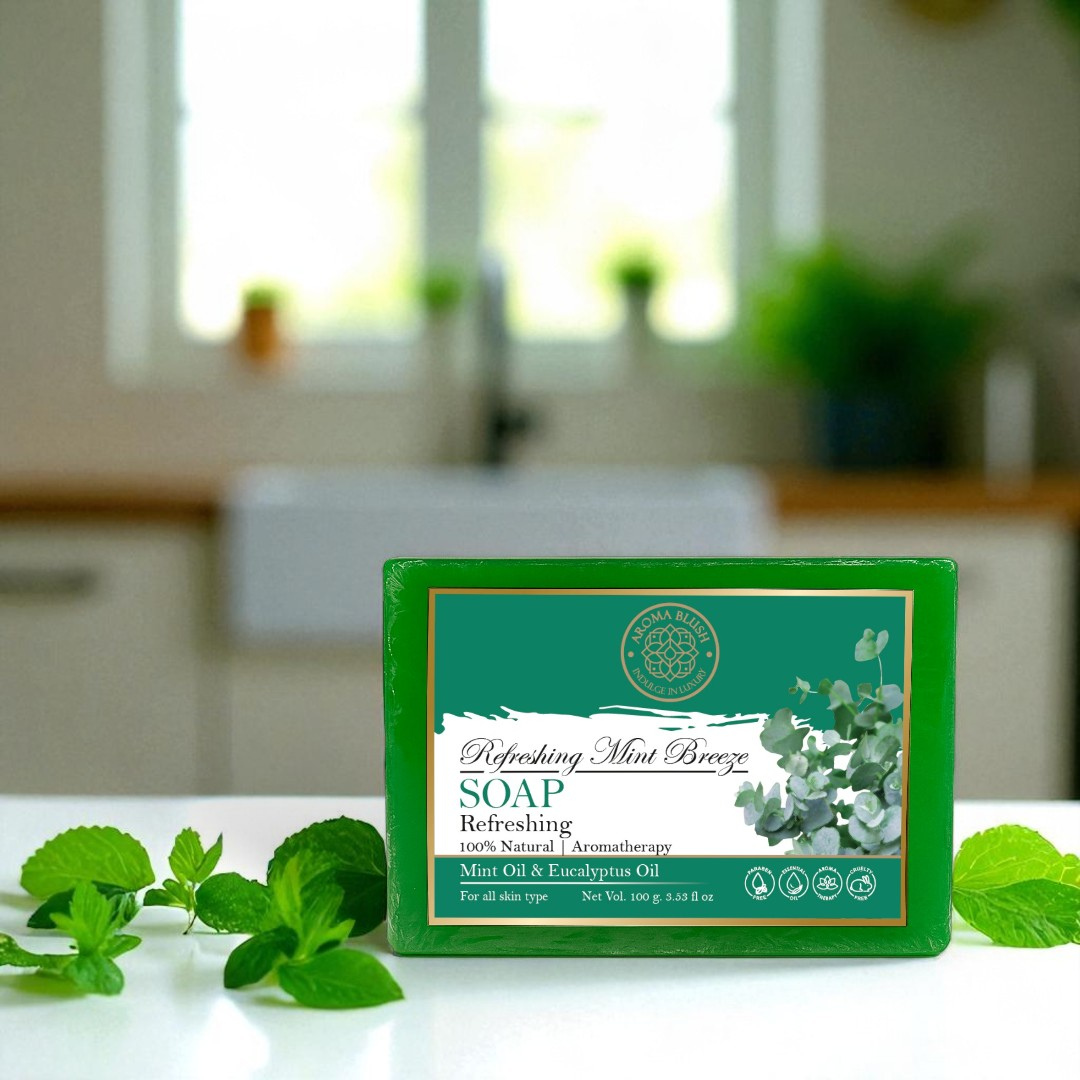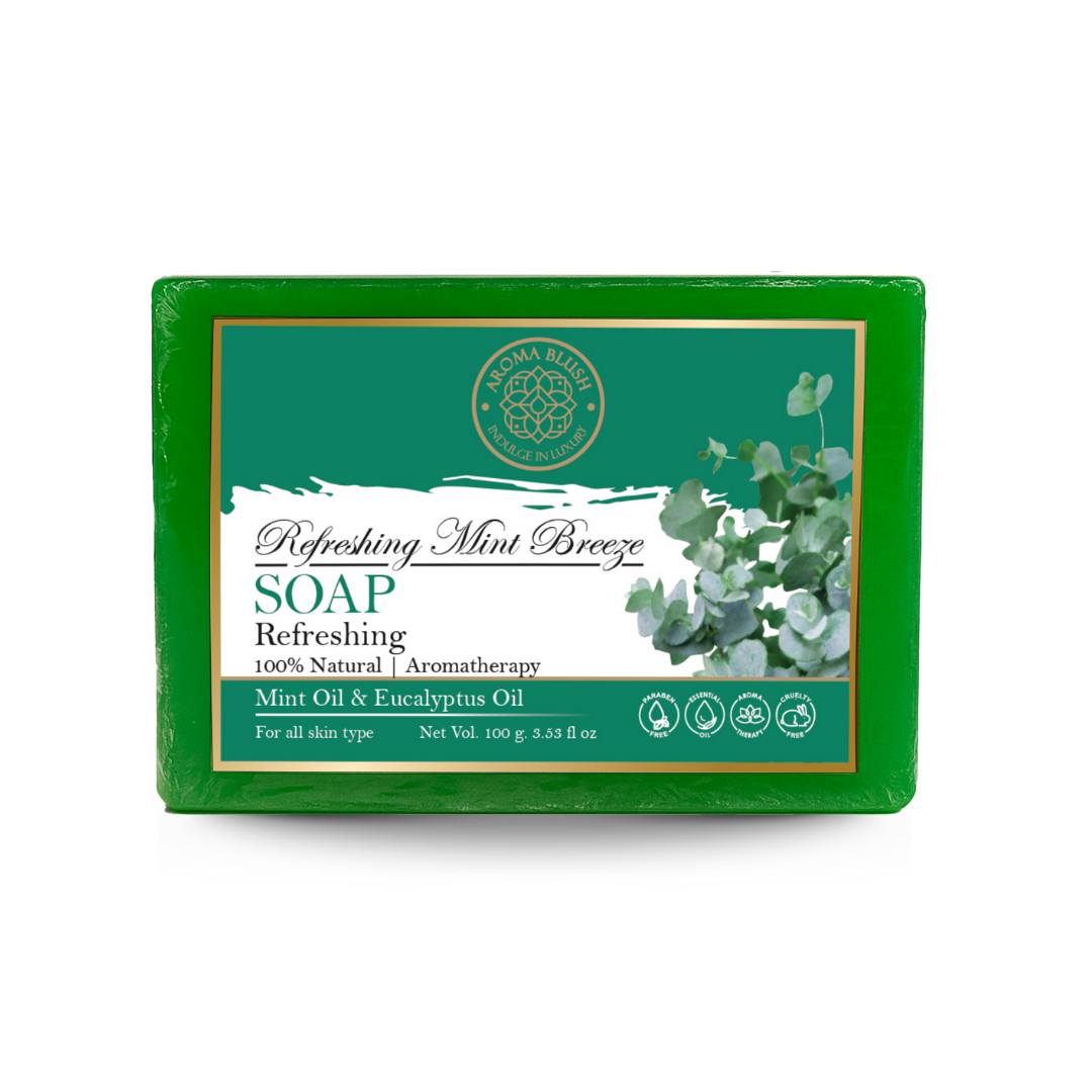 Awaken your senses with Aroma Blush Refreshing Mint Breeze Soap. Infused with invigorating Mint and soothing Eucalyptus, this handmade soap is designed to provide a refreshing cleanse while revitalizing your skin and spirit.