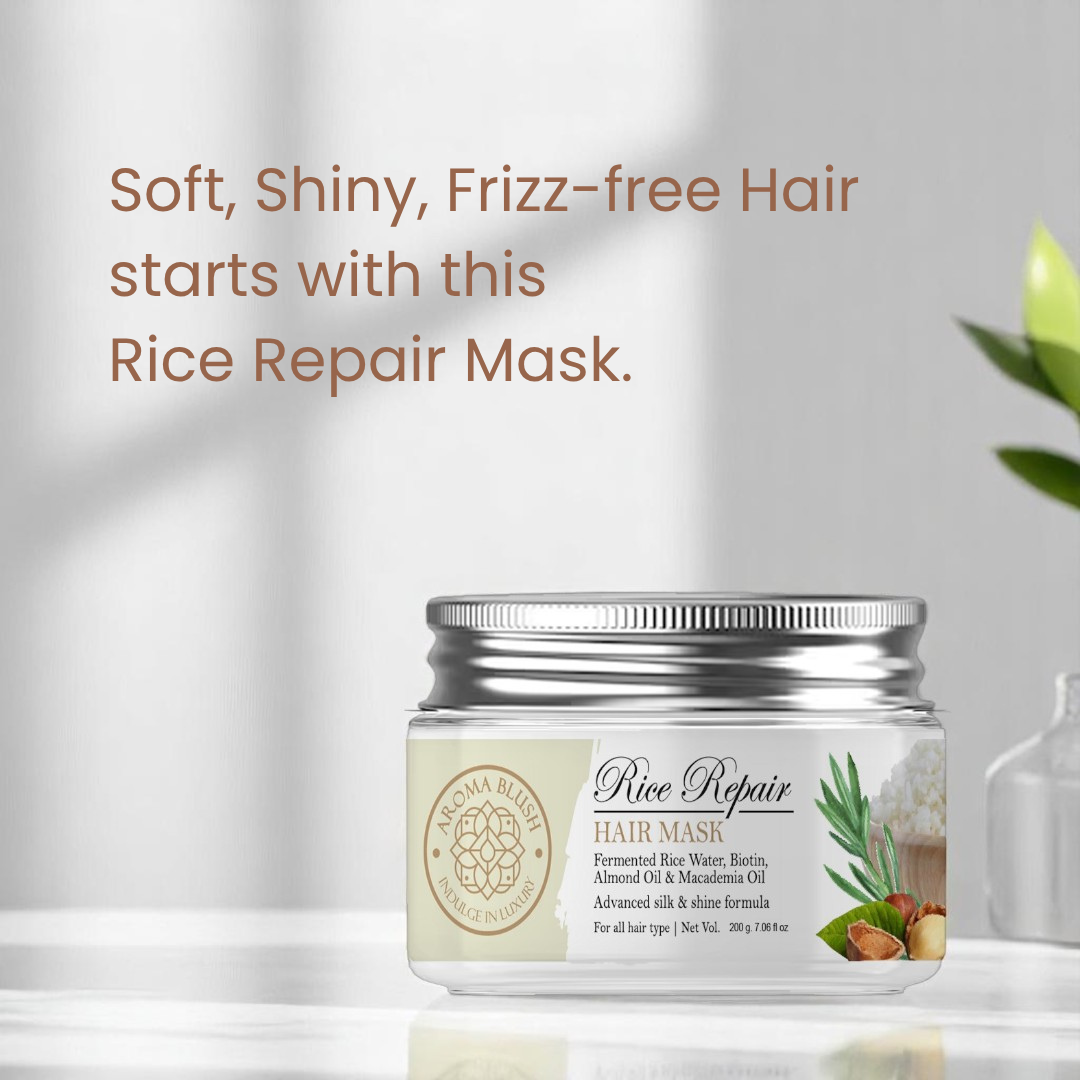 Discover the ancient beauty secret of rice water in its most luxurious form with AromaBlush’s Rice Repair Haircare Combo. Thoughtfully crafted with fermented rice water, plant-based keratin, and vital amino acids, this trio gently cleanses, deeply conditions, and intensely repairs damaged hair from root to tip. Whether your hair is dry, dull, frizzy, or chemically treated, this holistic ritual brings life back to every strand — stronger, smoother, and shinier than ever before.