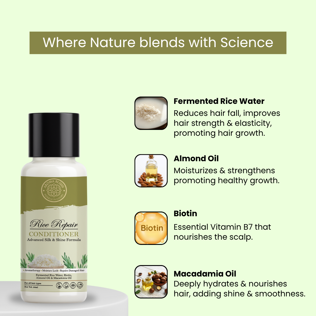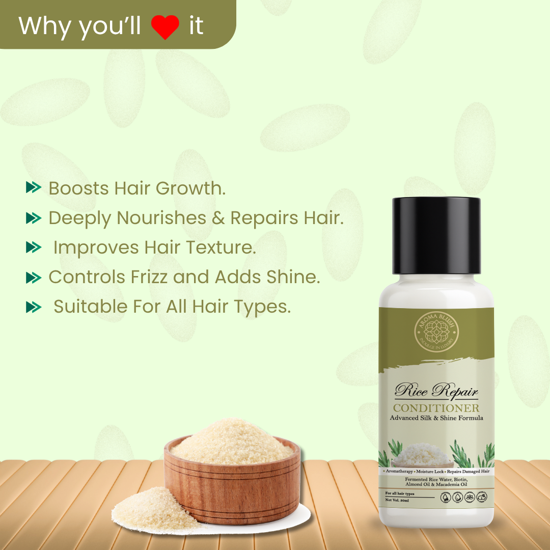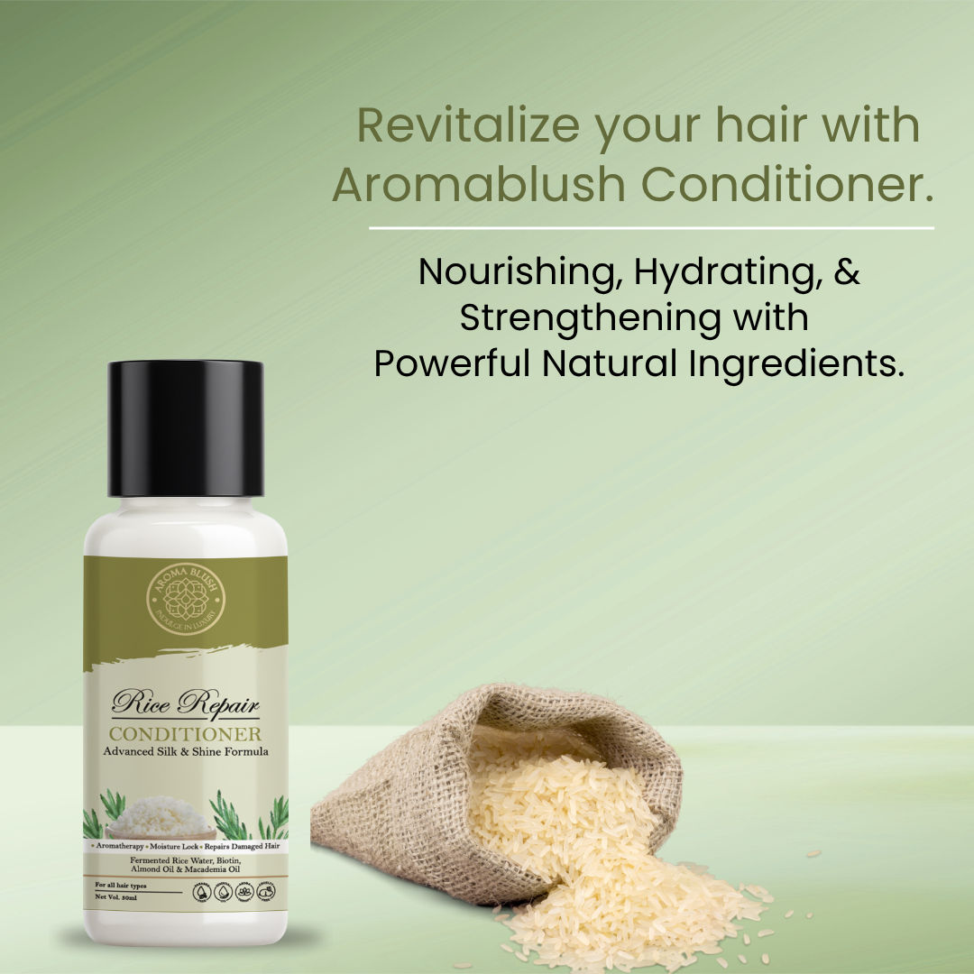Transform your hair care routine with Aromablush Fermented Rice Conditioner. Infused with the power of Fermented Rice Water, Biotin, Almond Oil, Macadamia Oil, and Vitamin E, this exceptional conditioner deeply nourishes, hydrates, and strengthens your hair, giving it a healthy and vibrant appearance.