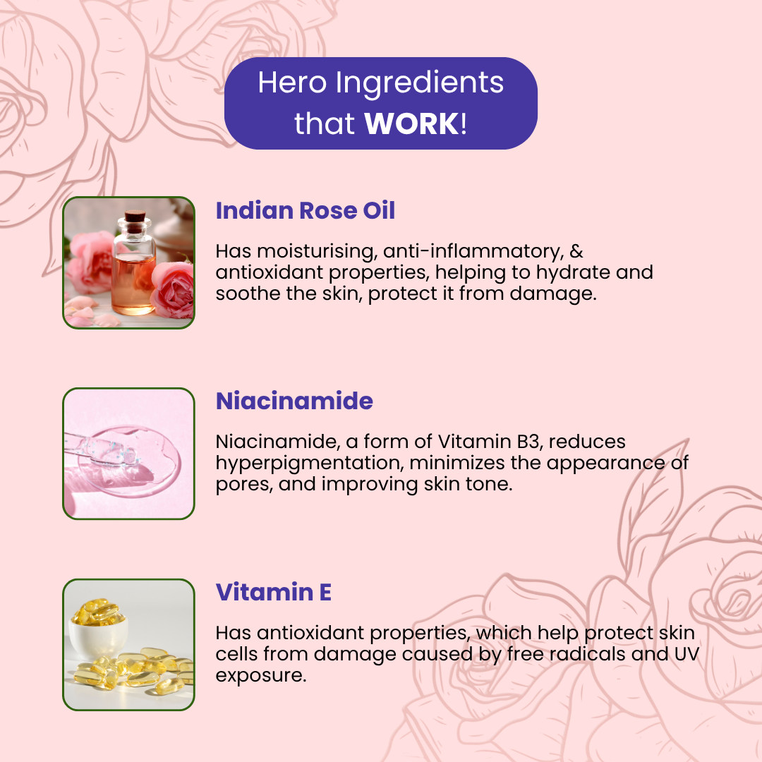 Transform your skincare routine with Aromablush Blooming Lily Body Lotion, a luxurious blend of Indian Rose Oil, Niacinamide, and Vitamin E. This body lotion is designed to deeply nourish, brighten, and hydrate your skin, leaving it soft, supple, and glowing. With its lightweight, non-greasy formula, it’s perfect for daily use, delivering intense moisture and a radiant finish. Experience the gentle, floral scent of roses with every application, making it a self-care essential.